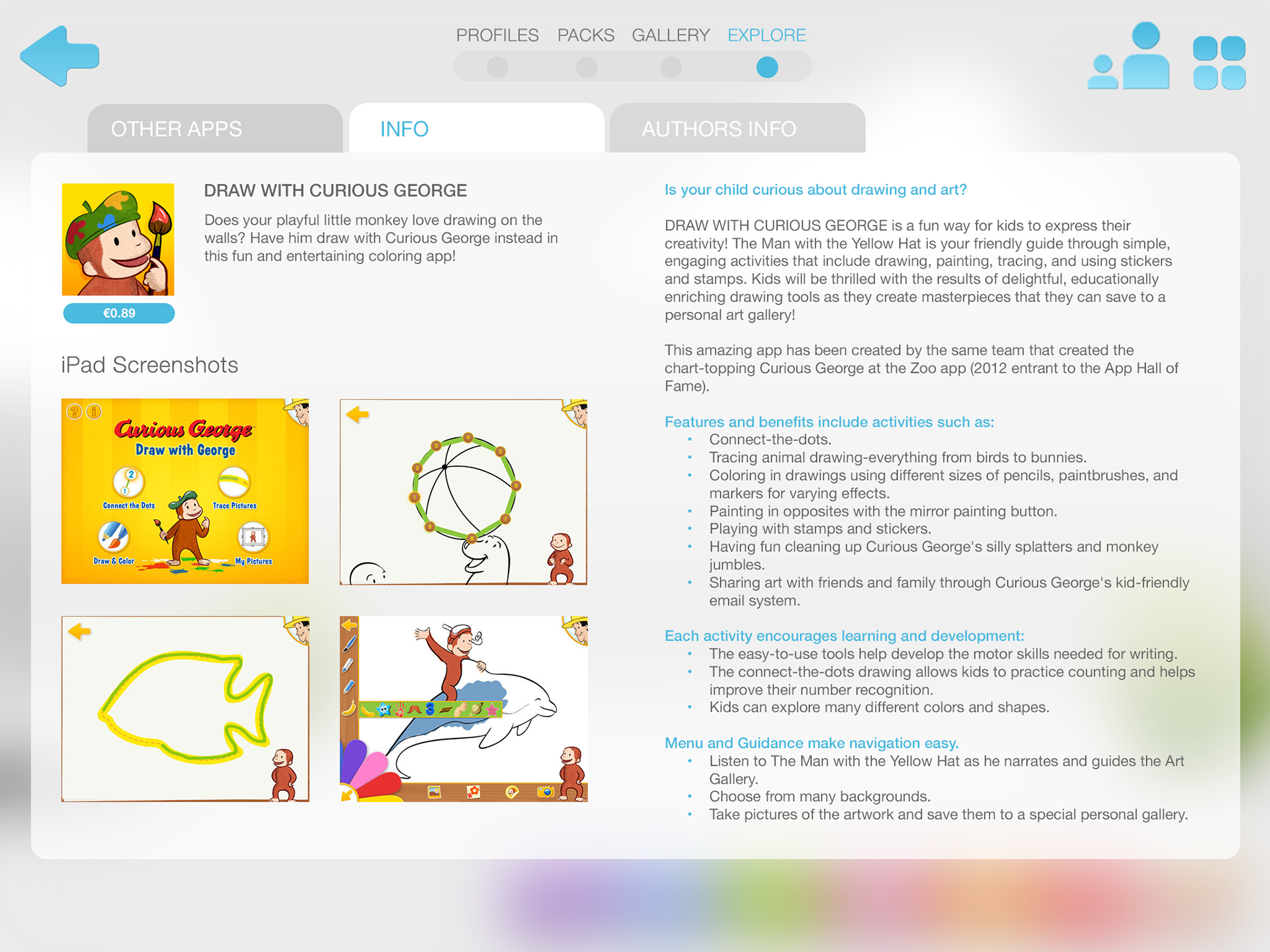 Each app pack provides at least five activities, including a real-world experience that parents and children can enjoy together.